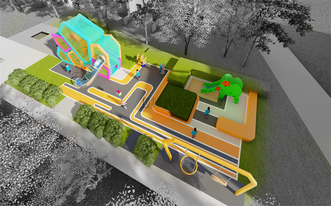 在進行裝備選擇的過程中,我們要對孩子們的心理需求展開分析,從他們的行為和想法上來進行分析,還可以向兒童們提出一些問題,這些問題可以在兒童較多的地區去進行走訪、了解和調查。游戲設備的種類、配置、路線等都會對兒童的游戲產生一定的影響,比如設備間的道路寬度,設備建筑的顏色,設備的總體規格尺寸等等。這些都是我們在進行游樂場布局時應該考慮到的問題。在認識到這一點之后,我們就要對游樂場進行合理地布局了。